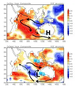 - ^ a b c d e Behera SK, Yamagata T. 2001. Subtropical SST dipole events in the southern Indian Ocean, Geophysical Research Letters 28: 327–330.