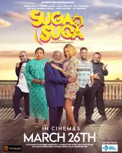 Suga Suga is a 2021 Nigerian romantic comedy film written by Priscilla Okpara directed by Richard Omos Iboyi.[1] The film stars Taiwo Obileye, Ayo Adesanya, Tana Adelana and Wole Ojo in the lead roles. The film had its theatrical release on 30 April 2021 and received mixed reviews from critics.[2][3]