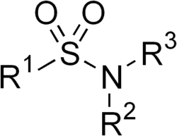 Sulfonamide is a functional group (a part of a molecule) that is the basis of several groups of drugs, which are called sulphonamides, sulfa drugs or sulpha drugs. The original antibacterial sulfonamides are synthetic antimicrobial agents that contain the sulfonamide group. Some sulfonamides are also devoid of antibacterial activity, e.g., the anticonvulsant sultiame. The sulfonylureas and thiazide diuretics are newer drug groups based upon the antibacterial sulfonamides.[1][2]