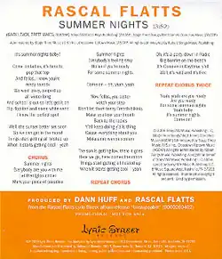 - ^ Bjorke, Matt (2009-05-20). "Rascal Flatts - "Summer Nights"". Roughstock. Retrieved 2009-05-27.