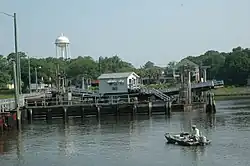 Since most of Sunset Beach and the adjoining Bird Island coastal reserve encompass a barrier island, the only way to get there from the mainland was by crossing a pontoon bridge (swing bridge) straddling the Intracoastal Waterway and adjacent marshland. It was a wooden structure that could only hold one lane of traffic at any given time, and was the only one of its kind still in use along the East Coast until 2010. During the day in the summer, traffic would be stopped every hour, on the hour, and the bridge would open to boat traffic on the waterway for 10 minutes. At 10 minutes after the hour, every hour, the bridge would reopen for vehicular traffic again for 50 minutes. During the off-season, the bridge only opened at the request of boat traffic. While this caused headaches for those trying to get on or off the island, many locals said the bridge did, however, give the town a more relaxed feel. Historically, this had been in stark contrast to the rapid growth affecting other beach communities along the Grand Strand.