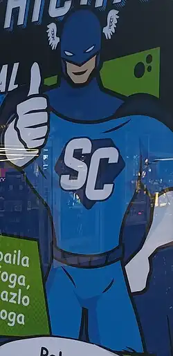 Super Chicha is a fictional character created by designer Guillermo Afonso for the Carnival of Santa Cruz de Tenerife in 1999,[1] when the carnival was devoted to comic books and a patriotic superhero of Tenerife (Canary Islands, Spain) was created. It was dubbed "Super Chicha" i.e. "Super Chicharrero" (Chicharrero popular is the adjective of the inhabitants of the city of Santa Cruz de Tenerife). To create that character inspired Captain America.[2]