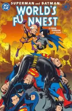 Superman and Batman: World's Funnest is an American single issue prestige format comic book published in 2000 by DC Comics. It was written by Evan Dorkin and illustrated by many artists. It is an Elseworlds tale and as such is not considered part of the main DC canon/continuity. Despite the title, Batman and Superman play only a small role in the story which stars instead Mr. Mxyzptlk and Bat-Mite as the main protagonists. The book pokes fun at many comic book conventions and DC heroes from the Golden through to the Modern Ages. Its setting is a multiverse similar to the Pre-Crisis DCU but also includes references to other Elseworlds tales (Kingdom Come and Batman: The Dark Knight Returns), the modern DCU, the DCAU and even pays a visit to Crisis on Infinite Earths.