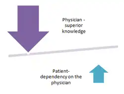 Physicians are by nature and duty patient advocates, guiding the patient through joint decision making. This in part stems from a large knowledge differential between the two, a term known as asymmetric information, and evidenced by the differential between patients and physicians' interpretation of medical terms, underscoring the need for physicians to cross examine patients to verify whether they understand the terminology used in the clinical encounter.[29] While the physician bears the brunt of the knowledge differential, the patient is also responsible for sharing their entire medical history, concerns, barriers to and preferences for treatment in order for the physician to be an effective advocate for their health .[30] In effect, the patient provides all relevant information to the physician and relies on the physician to make the clinical decisions for them. This relationship requires a great deal of trust on the part of the patient, assuming that the clinical decisions made solely focus on patient health.