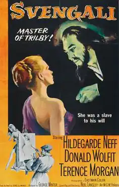 Svengali is a 1954 British drama film directed and written by Noel Langley and starring Hildegard Knef, Donald Wolfit and Terence Morgan.[1] It was based on the 1894 novel Trilby by George du Maurier. Svengali hypnotises an artist's model into becoming a great opera singer, but she struggles to escape from his powers. It was distributed in the United States by Metro-Goldwyn-Mayer.