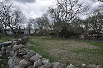 The Swansea Friends Meeting House and Cemetery, at 223 Prospect Street in Somerset, Massachusetts, are a pair of religious properties believed to include the oldest extant Quaker meetinghouse in the state, with the oldest surviving meetinghouse form in which the pulpit and entrance face each other across the building's short dimension (instead of the 19th century form, where they stand at opposite ends of the long dimension). The oldest portion of the building dates to 1702, when Somerset was part of Swansea. Originally only 24 feet (7.3 m) wide, the building was significantly enlarged in 1746, adding side bays and a second floor gallery. In the 19th century the balconies were closed off to provide office space. The cemetery adjacent to the meetinghouse is also believed to be of great age; its oldest dated marker is 1831, but 18th century Quaker practice did not generally include the laying of markers, so there are likely a number of unmarked early graves.[2]