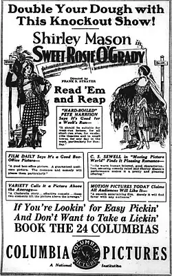 Sweet Rosie O'Grady is a 1926 American silent comedy drama film directed by Frank R. Strayer from a screenplay by Harry O. Hoyt. The film was released by Columbia Pictures on October 5, 1926, and stars Shirley Mason, Cullen Landis, and E. Alyn Warren.[2]