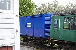 | LMS | PBA27 | 4-wheel ventilated van | Unknown build date. Later used by the Port of Bristol Authority and numbered 27. Recently restored to operational condition and painted blue with a 'Jewson' logo.[13] |