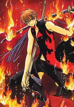 Throughout the journey, Syaoran starts bonding with Sakura again, and becomes friends with Fai, Kurogane, and Mokona.[23] Syaoran specializes in hand-to-hand combat, mainly focusing on kicks taught by hunter Seishirō during his childhood when he had no visual perception of depth because he was blind in his right eye.[24][25] He later trains blindfolded with Kurogane to overcome this weakness.[26] Kurogane also teaches him swordsmanship to make him a stronger fighter, and he gains Hien (緋炎; lit. "Scarlet Flame")—a sword with magical properties that allow it to create fire.[27][28]