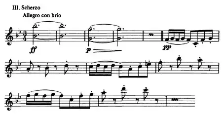 - Scherzo: Allegro con brio in B-flat major, with trio in A major, 501 measures