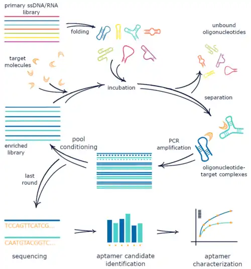 - ^ Kohlberger M, Gadermaier G (August 2021). "SELEX: Critical factors and optimization strategies for successful aptamer selection". Biotechnology and Applied Biochemistry. 69 (5): 1771–1792. doi:10.1002/bab.2244. PMC 9788027. PMID 34427974. S2CID 237280042.