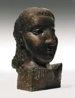 Tête de femme (Dora Maar) is a plaster-modelled, bronze-cast sculpture by Pablo Picasso. Dora Maar, Picasso's lover at the time, was the subject of the work which was originally conceived in 1941. Four copies of the bust were cast in the 1950s, several years after the relationship ended.