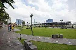 The second street stretched along the bank of Saigon River, it is further separated into two parts, then known as the quais, by the Place Rigault de Genouilly (present-day Mê Linh Square). The southern quai had its name changed quite often throughout the French colonial period. Initially quai de Donnai, the name of the quai was successively changed to quai Napoléon (1865), quai du Commerce (1870), quai Francis Garnier (1896) and finally quai le Myre de Vilers (1920).[3]: 300 The northern quai, located immediately in front of the naval barracks, also had two different names, initially quai Primauguet and then changed to quai d'Argonne in 1920.[3]: 87 In 1955, both quais were given a single name, Bạch Đằng Quay (Bến Bạch Đằng), by the South Vietnamese government.[4]