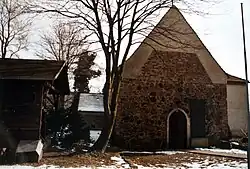 Tabor Church is by far the oldest still existing building in the locality. The church is oriented and was built in the late 13th century,[2] or possibly earlier, around 1230. That is about 100 years earlier than the first recorded mentions of the former village (in 1352 and 1356).