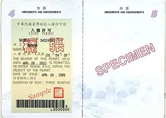 Singapore was the first country in Asia to deny entry to holders of altered passports on 29 November 2015, and deported three ROC nationals for "altering their travel documents".[35] Among the three, two immediately removed the Republic of Taiwan stickers upon the further inquiries by the Immigration and Checkpoints Authority (ICA) officers, but were eventually deported by Singapore to Taiwan. Another person had refused to remove such stickers and instead requested diplomatic representatives of Taiwan for consular protection, but was also deported in the end by ICA.[36] The two Special Administrative Regions of China, Hong Kong and Macau, soon followed suit and refused to accept holders of such passports for entry.[37][38] A spokesperson of Hong Kong Immigration Department said that any person who "altered the travel document without lawful authority, or, who possess or use altered travel document", is a violation of Immigration Ordinance and can be sentenced for up to 14 years in prison.[39]