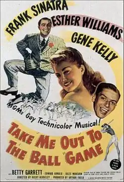 Take Me Out to the Ball Game is a 1949 American Technicolor musical film produced in the Arthur Freed unit of MGM. It stars Frank Sinatra, Esther Williams, Gene Kelly, Betty Garrett, Edward Arnold and Jules Munshin, and was directed by Busby Berkeley. The title and nominal theme is taken from the unofficial anthem of American baseball, "Take Me Out to the Ball Game." The film was released in the United Kingdom as Everybody's Cheering.