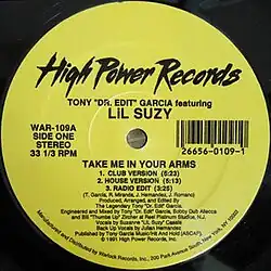 "Take Me in Your Arms" is a song by freestyle singer Lil Suzy. Released as a single in 1991 from the album Love Can't Wait, it reached No. 67 on the Billboard Hot 100[1] and No. 4 on the Canadian dance chart.