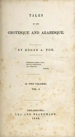 Tales of the Grotesque and Arabesque is a collection of previously published short stories by Edgar Allan Poe, first published in 1840.