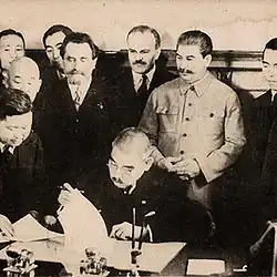 On the same day, Tatekawa signed a separate treaty in which the Soviet Union pledged to respect the territorial integrity and inviolability of Manchukuo, and Japan pledged the same to respect the Soviet hegemony over the People's Republic of Mongolia.