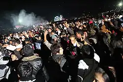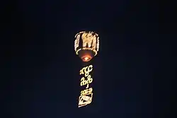The hot air balloon competition goes on all day long and until late at night, providing an opportunity for various villages and families from the surrounding region to exhibit their homemade hot air balloon creations.[8] In the daytime, the show is focused on the children, featuring large balloons fashioned into animal shapes, ranging from birds to tigers and elephants. The sky is filled with hot-air balloons, mostly representing traditional Myanmar and cartoon figures, popular among kids and adults.[6][7][9] In the evening, the festival comes alive with the exciting main hot-air balloon competition. These balloons are decorated with hundreds of candles and fireworks attached at the bottom are lighted once they fly into the sky.[3][6]