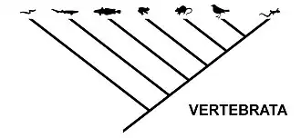 The same relationship, expressed as a cladogram typical for cladistics