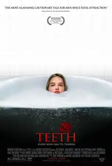Teeth is a 2007 American comedy horror film written and directed by Mitchell Lichtenstein. The film stars Jess Weixler and was produced by Lichtenstein on a budget of $2 million.[1] It premiered at the Sundance Film Festival on January 19, 2007, and received a limited release in the United States on January 18, 2008, by Roadside Attractions. Its title refers to the ancient trope of vagina dentata.