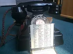The first UK public automatic exchange was brought into service at Epsom, Surrey, in May 1912[12] using the American Strowger 'step-by-step' system. It allowed subscribers to dial the local number themselves (instead of asking the operator to connect them manually). A permanent "junction telephone service" was inaugurated between Liverpool and Manchester during 1914. In 1922 the practice of using the first three letters of an exchange name was introduced in London, Manchester and Birmingham in preparation for automatic dialling. By 1924 there were over a quarter of million lines connected to more than 40 automatic exchanges. The main problem in large cities was directing a call over a complex series of interlinking circuits. The first fully automatic system in a large urban area was under an advanced form of the Strowger concept (which enabled one exchange to be connected automatically to another). Called the Director telephone system, this was first tried on a large scale in London's Holborn Tandem exchange in 1927. The concept was envisaged to be effective for many major built-up areas and the first three exchanges outside London to be 'cut-over' to the automatic Director system were: Ardwick, Collyhurst and Moss Side in Manchester during 1930.[13] The exchanges covering the city centre and some suburbs with 7 and a half miles were progressively converted to the same system during the next few years. The automation process meant that a large number of mainly female telephone operators in the Manchester exchanges became redundant – a crisis that was mentioned in Parliament in 1933. But it had revolutionised call-making across the city. For example, subscribers in Collyhurst and Moss Side were then able to dial the letters A (=2), R (=7) and D (=3) followed by the four digit Ardwick subscribers number to connect them directly without talking with an operator. (3 exchanges in Birmingham were next, in 1931, one in Glasgow in 1937, one in Liverpool in 1941, Edinburgh's automatic system did not start until 1950). By the time the system was superseded in 1966, there were around 50 three-letter exchange name codes in the Manchester Automatic System (list inside a telephone drawer, pictured), more than in any other director area outside the capital.