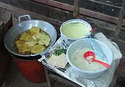 Sate kere (Javanese for 'poor man's satay') from Solo in Central Java is made from fluffy tempe gembus.[57] Ground tempeh can also be made into a thick sauce, such as in sate ambal, a chicken satay from Kebumen, Central Java where tempeh flavored with chili and spices replaces the more common peanut sauce.[58]