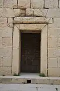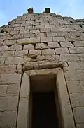 The Temple of Anahita is a large rectangular room in the shape of a cube in a depression 6 meters above the ground, each side of which is nearly 14 meters. It is built of carved stones without mortar, double-walled, and in the Achaemenid architectural style. These stones are connected to each other with iron fasteners. A staircase from the palace was also connected to this temple. The temple has no roof and the purpose was to bring the water of the Shapur River, which flows 250 meters away, into the temple, so that after flowing inside the temple, it would be discharged through a Qanat.[8][9]