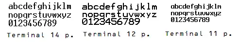 Terminal is a family of monospaced raster typefaces. It is relatively small compared with Courier. It uses crossed zeros, and is designed to approximate the font normally used in MS-DOS or other text-based consoles such as on Linux. In Microsoft Windows, it is used as the default font in the Command Prompt in Windows 7 and earlier.[1]