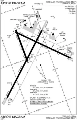 - FAA Airport Diagram for HUF (PDF), effective August 7, 2025