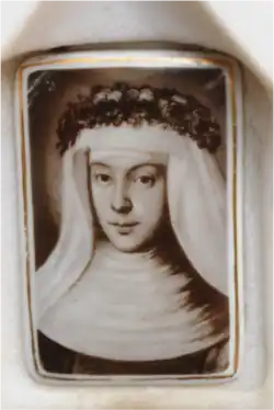 Maria Hueber was born May 22, 1653, in Brixen. The youngest of five children, she worked for a time as a nanny and as a housekeeper in neighboring towns to help support her widowed mother. Hueber returned to Brixen to care for her ill and elderly mother; there she joined the Third Order of St. Francis. Her mother died in 1696.[1]
