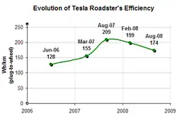 152. ^ Simpson, Andrew (September 24, 2007). "Where the Rubber Meets the Road". Retrieved February 22, 2008. Mr. Simpson confirmed via email that "We do not quote station-to-wheel efficiency, but we do quote plug-to-wheel efficiency which includes all energy use downstream of the charging plug. For the most recent 221 mi (356 km) range test, our plug-to-wheel efficiency was 336 Wh/mi".