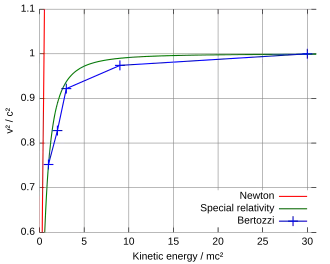 - ^ Bertozzi, William (1964), "Speed and Kinetic Energy of Relativistic Electrons", American Journal of Physics, 32 (7): 551–555, Bibcode:1964AmJPh..32..551B, doi:10.1119/1.1970770