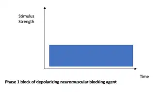 Phase 1 block does not show fade under tetanic stimulation. With further administration of depolarizing neuromuscular blocking agent, an effect that is similar to the response of muscle to non-depolarizing neuromuscular blocking agents can be observed. This response, termed phase 2 block, will demonstrate similar fade under tetanic stimulation, a diminishing response to tetanic stimulation where the initial response will be the strongest, and will produce lower and lower response intensity.[1][2]