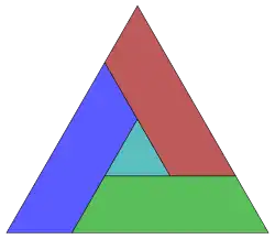 In geometry, a tetrad is a set of four simply connected disjoint planar regions in the plane, each pair sharing a finite portion of common boundary. It was named by Michael R. W. Buckley in 1975 in the Journal of Recreational Mathematics. A further question was proposed that became a puzzle, whether the 4 regions could be congruent, with or without holes, other enclosed regions.[1]