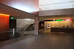 Basaltina Italian Stone flooring on the ground level was quarried an hour north of Rome. Basaltina is a volcanic stone used for centuries; the ancient Romans used it to build roads and monuments. Basalts have the consistent coloration, markings and subtlety of limestone and the durability of granite. It is aged through a natural process so it can be honed and polished. Admiring its unique gray tone, Taniguchi has used it in many of his buildings.