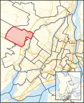 Thérèse-De Blainville was created by the 2012 federal electoral boundaries redistribution and was legally defined in the 2013 representation order. It came into effect upon the call of the 42nd Canadian federal election, scheduled for 19 October 2015.[2] The riding was created from parts of Terrebonne—Blainville (51%) and Marc-Aurèle-Fortin (49%).[3]