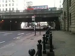 Thames Street, divided into Lower and Upper Thames Street, is a road in the City of London, the historic and financial centre of London.[1] It forms part of the busy A3211 route (prior to being rebuilt as a major thoroughfare in the late 1960s, it was the B132) from Tower Hill to Westminster. The London Bridge underpass marks the divide between Upper and Lower Thames Street, with Lower to the east and Upper to the west.