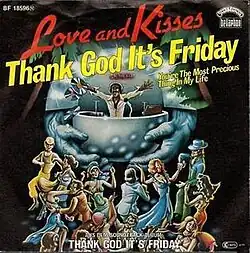 "Thank God It's Friday" is a 1978 disco song by the studio disco group Love & Kisses, popularized as the theme song of the film by the same name. It was written by European composer and producer Alec R. Costandinos. Along with the tracks: "Last Dance" by Donna Summer, "After Dark" by Pattie Brooks, and "Take it to the Zoo" by Sunshine, "Thank God It's Friday", peaked at #1 on Billboard's Disco charts.[1] On other US charts, "Thank God It's Friday" went to #23 on the Hot Soul Singles chart and #22 on the Hot 100.[2]