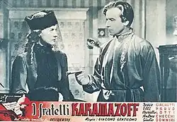 The Brothers Karamazov (Italian: I fratelli Karamazoff) is a 1947 Italian historical drama film directed by Giacomo Gentilomo and starring Fosco Giachetti, Lamberto Picasso and Mariella Lotti.[1] It is based on the 1880 novel of the same title by Fyodor Dostoyevsky.[2] It won two Nastro d'Argento Awards, for best screenplay and for best score.[3] The film's sets were designed by the art director Alberto Boccianti.