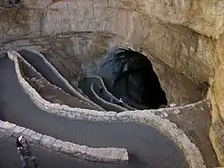 The upper part of the amphitheater is reached by the Carlsbad Caverns Trail, a hiking trail leading from the park's tourist office in the southwest, which then sinks into the cavern in the northeast. The trail has also been listed as a National Recreation Trail since 1983.