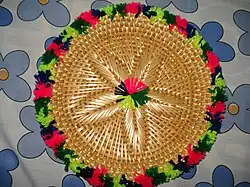 Many items are made like Chabiyu, Pindiyu/Dabeki (plate for bread roti), hotpots, mats, hand fans etc., these items are also decorated with colorful pompoms, metallic thread and sometimes with mirrors.