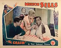 The Crash is a 1928 American synchronized sound drama film directed by Edward F. Cline and starring Milton Sills, Thelma Todd and Wade Boteler.[1] While the film has no audible dialog, it was released with a synchronized musical score with sound effects using the sound-on-disc Vitaphone process. The film appears to have had a soundtrack added late in its run in an attempt to make it more popular with audiences who were largely staying away from silent films as many reviews do not mention the sound at all.