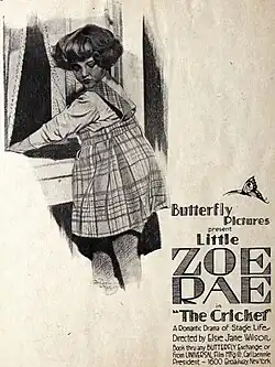 The Cricket is a 1917 American silent drama film directed by Elsie Jane Wilson and starring Gretchen Lederer, Zoe Rae and Winter Hall.[1]
