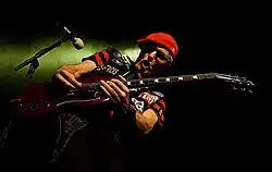 The band briefly dissolved after Music for Pleasure (1977), the follow-up to their debut studio album, was critically dismissed.[10] They quickly reformed without Brian James and released Machine Gun Etiquette (1979).[11] In the 1980s, they released four studio albums: The Black Album (1980), Strawberries (1982), Phantasmagoria (1985) and Anything (1986), which saw the band moving toward a gothic rock style. The latter two albums did not feature Sensible, who had left the band in 1984.[12] In 1988, James and Sensible rejoined to play a series of reunion gigs, one of which was released the next year as the live album Final Damnation (1989).[13] Their fast-driven punk rock has been cited for influencing and shaping the emergence of hardcore punk in the late 1970s and early 1980s in the United Kingdom and the United States.[14]