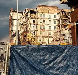 On June 6, 2023, demolition was planned to start on the partially collapsed building. City officials initially reported that demolition would start two days after the collapse,[14] but there were numerous delays due to protesters pushing for the search of missing individuals. There were also health concerns due to possible asbestos and other hazardous materials located inside the building, which prompted the city to order individuals living nearby to evacuate.[14] Demolition began on June 12, 2023.[15]