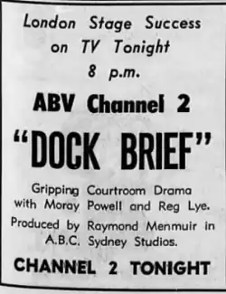 - ^ ""Dock Brief" Telecast from ABN". Sydney Morning Herald. 28 January 1960. p. 5.