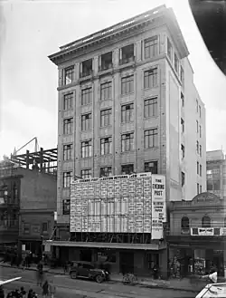 Printing and publishing is in the linked building at the rear fronting onto Boulcott Street. Returns for the 1928 general election are visible on the front of the building.