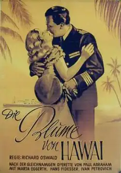 The Flower of Hawaii (German: Die Blume von Hawaii) is a 1933 German musical film directed by Richard Oswald and starring Mártha Eggerth and Iván Petrovich.[1] The film was shot at the Tempelhof Studios in Berlin with sets designed by the art director Franz Schroedter. Location shooting took place on the French Riviera. It is an adaptation of the operetta The Flower of Hawaii by Paul Abraham. The operetta was later adapted again for a 1953 film. It is based on the life of the last Queen of Hawaii, Liliuokalani.